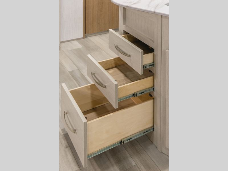 Each model features durable construction materials, allowing you to enjoy your RV for years to come. There are comfortable sleeping and seating spaces, full bath and kitchen amenities, and ample storage solutions for camp gear, food, games and more!