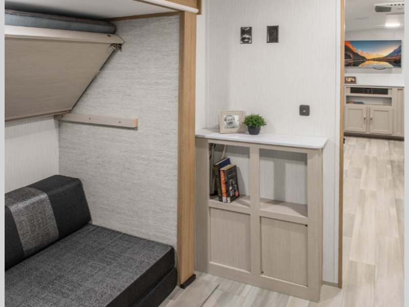 Sleeps 9 Slides 1 Length 31 ft 11 in Ext Width 8 ft 1 in Ext Height 11 ft 6 in Int Height 6 ft 8 in Interior Color Integrity Hitch Weight 1022 lbs GVWR 9822 lbs Dry Weight 6612 lbs Fresh Water Capacity 46 gals Grey Water Capacity 60 gals Black Water Capacity 30 gals Tire Size 15" Furnace BTU 30000 btu Number Of Bunks 2 Available Beds Olympic Queen Refrigerator Type Double Door Refrigerator Size 10.7 cu ft Cooktop Burners 3 Number of Awnings 1 Axle Weight 4400 lbs LP Tank Capacity 20 lbs Water Heater Type Tankless On Demand AC BTU 13500 btu Awning Info 20' Power with LED Lights Axle Count 2 Number of LP Tanks 2 Shower Type Standard Similar Floorplans