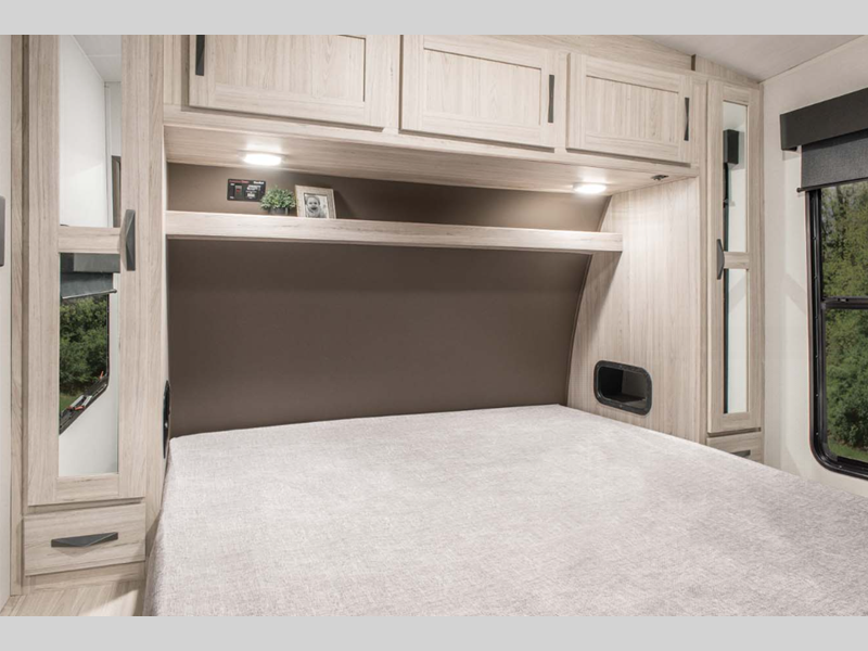 Sleeps 6 Slides 1 Length 31 ft 9 in Ext Width 8 ft 6 in Ext Height 12 ft 10 in Hitch Weight 1290 lbs GVWR 12800 lbs Dry Weight 7810 lbs Cargo Capacity 4942 lbs Fresh Water Capacity 98 gals Grey Water Capacity 57 gals Black Water Capacity 57 gals Tire Size 16" Furnace BTU 35000 btu Fuel Capacity 30 gals Number Of Bunks 1 Available Beds King Refrigerator Type 12V Refrigerator Size 10.7 cu ft Cooktop Burners 3 Number of Awnings 1 Axle Weight 6000 lbs Garage Size 14 ft LP Tank Capacity 30 lbs Water Heater Capacity 10 gal Water Heater Type LP/110/DSI AC BTU 15000 btu Awning Info 19' Power with LED Lights Axle Count 2 Number of LP Tanks 2 Shower Type Radius Electrical Service 30 amp Similar Floorplans